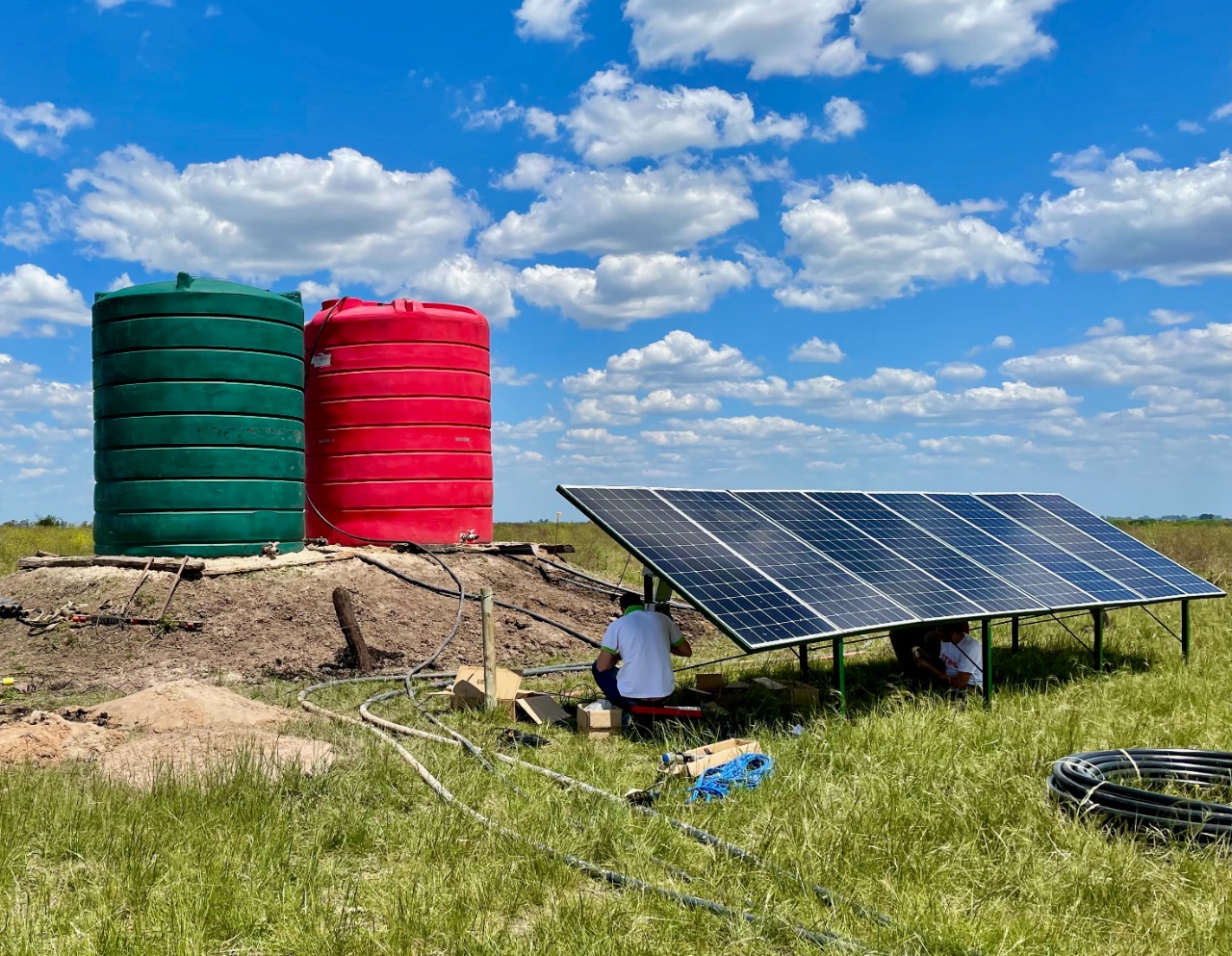 En coherencia con el pensamiento holístico del planteo ganadero, al momento de pensar en cómo obtener energía para las bombas de agua y para la casa del encargado, en vez de hacer lo típico (pedir el tendido eléctrico) optaron por un sistema de energía solar y eólica, al saber que los días nublados suelen ser ventosos. Este sistema, además, tiene en cuenta la famosa “huella de carbono” (las emisiones que se generan con las actividades).
